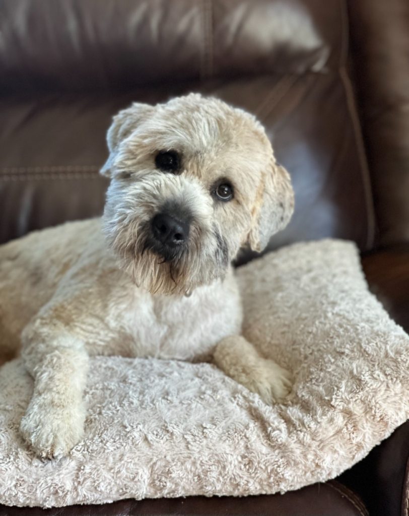 Dewey is our fun, energetic girl, who loves life to the fullest. She is also a wonderful mama. She is AKC registered, has an American coat and weighs approx. 28 lbs.